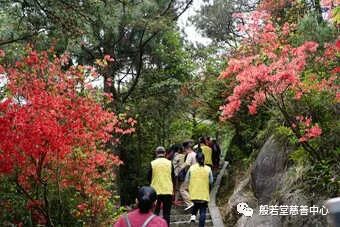 志工们整齐列队上玉苍山观光、赏杜鹃花。